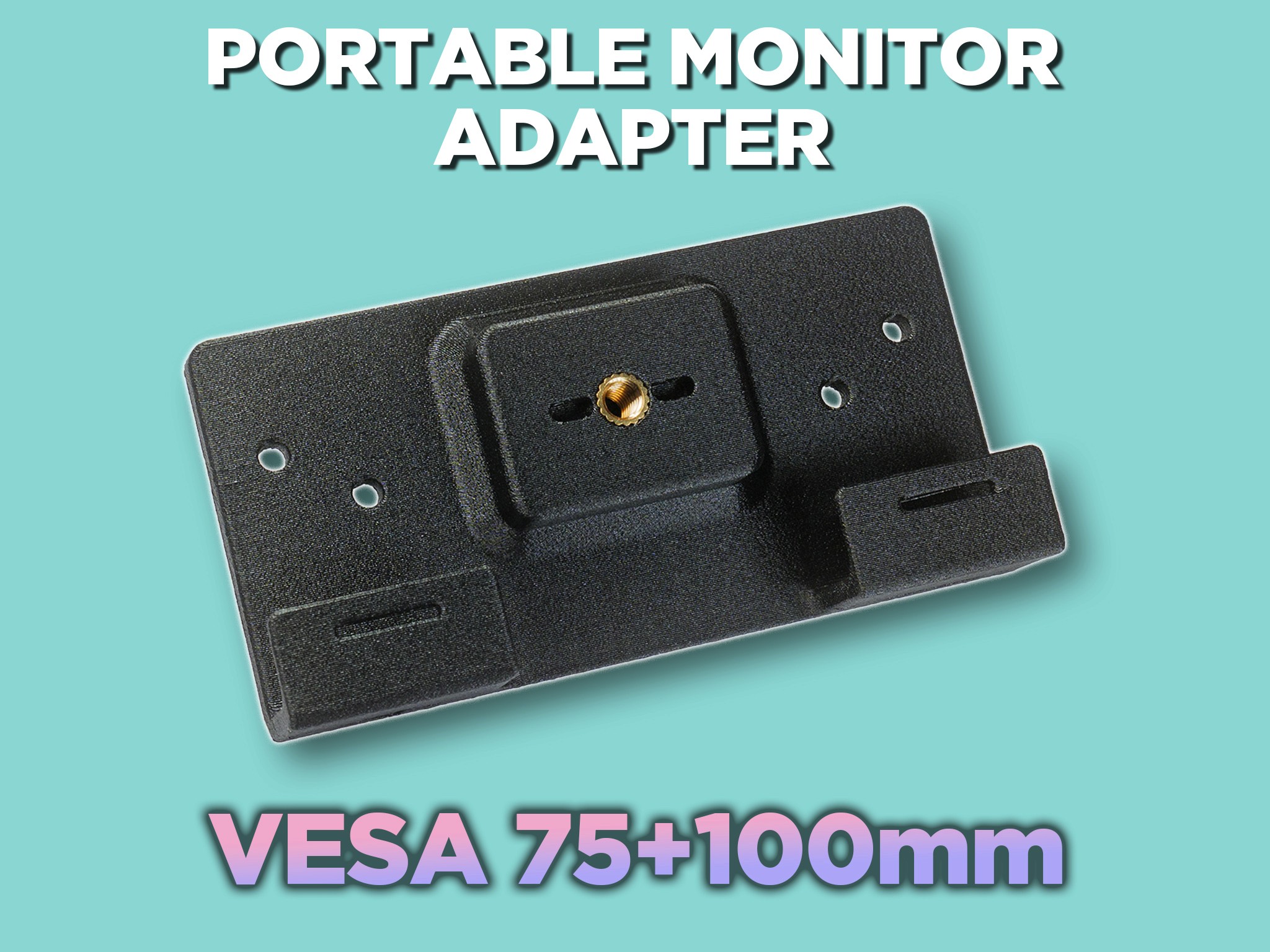 This 75+100mm combo VESA adapter plate enables you to mount your portable monitor to virtually anything. Mount the adapter to your monitor using the included custom thumbscrews, then pair it with any friction arm or clamp that uses a 1/4"-20 thread. This version is designed for portable monitors with x2 VESA screw holes and supports both 75mm and 100mm VESA mounting standards.