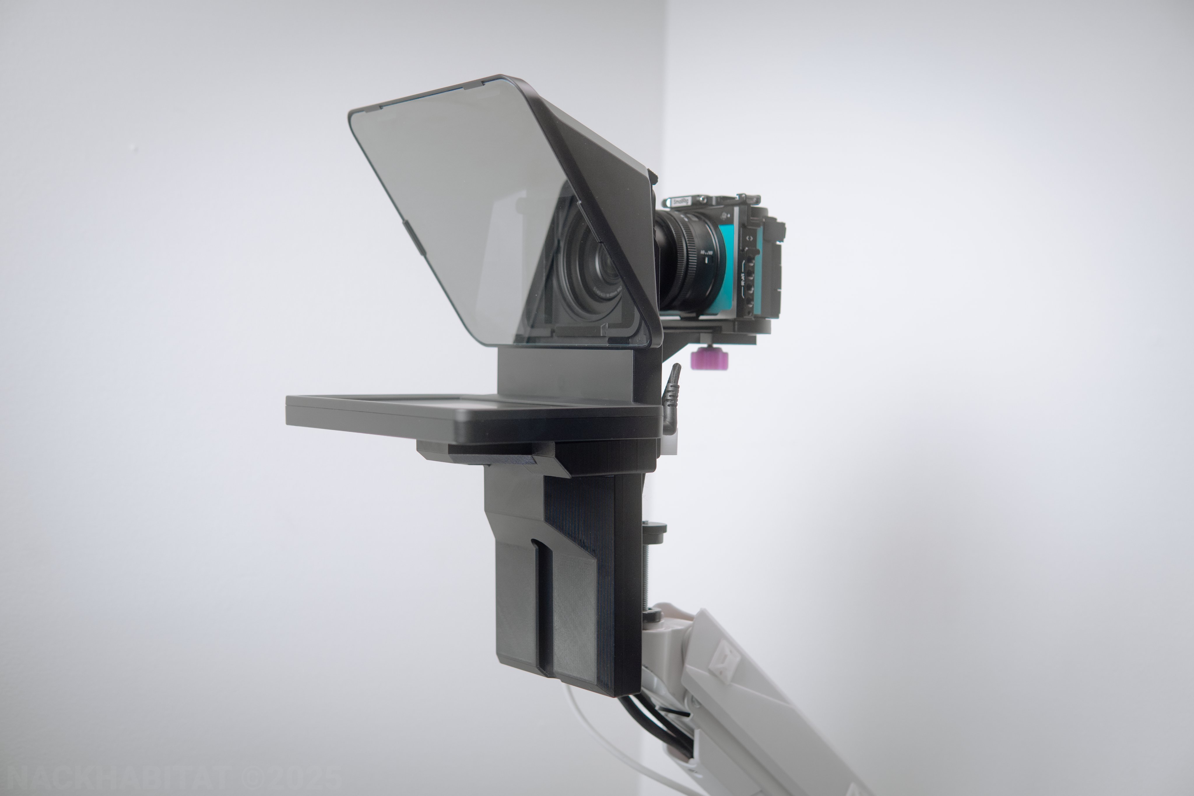 The Televase is an adapter that connects to the Elgato prompter and lets you mount it to any standard 75mm or 100mm VESA arm.