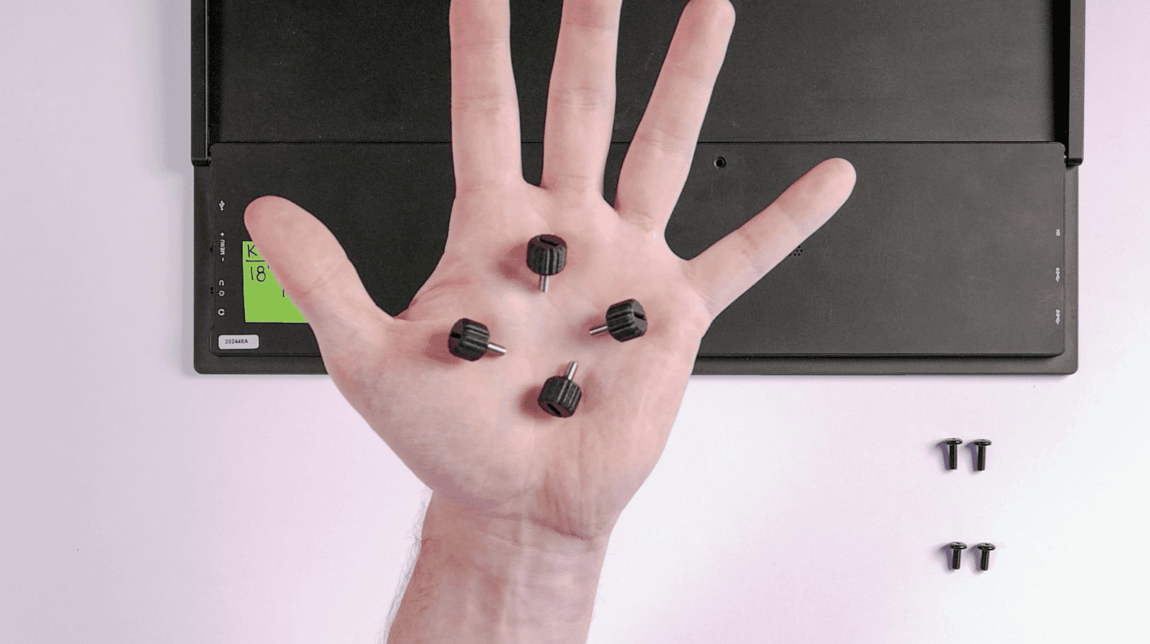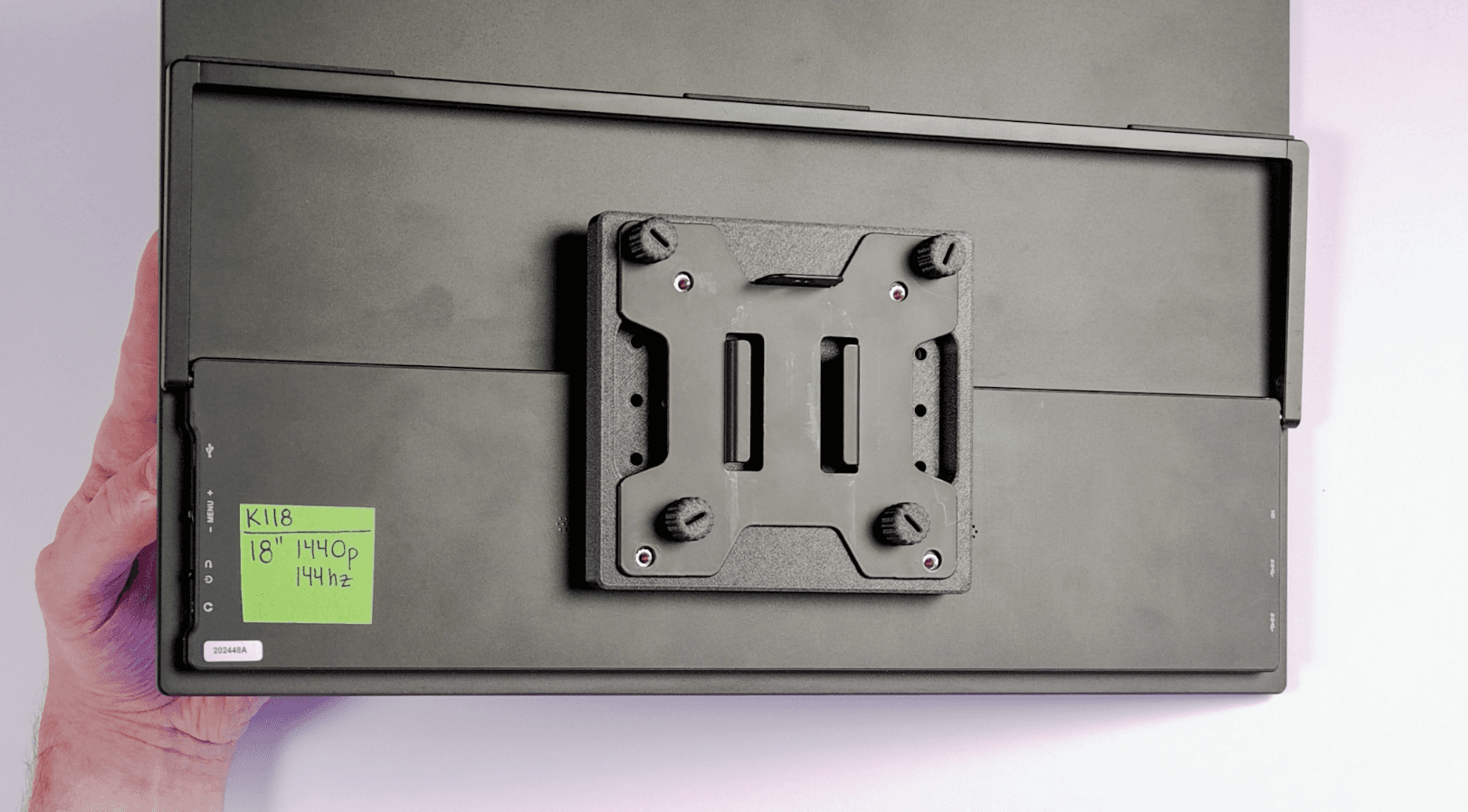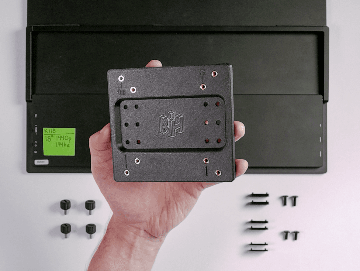 Now you're ready to mount this portable monitor onto your VESA stand. Get your (4) M4 Thumbscrews ready.